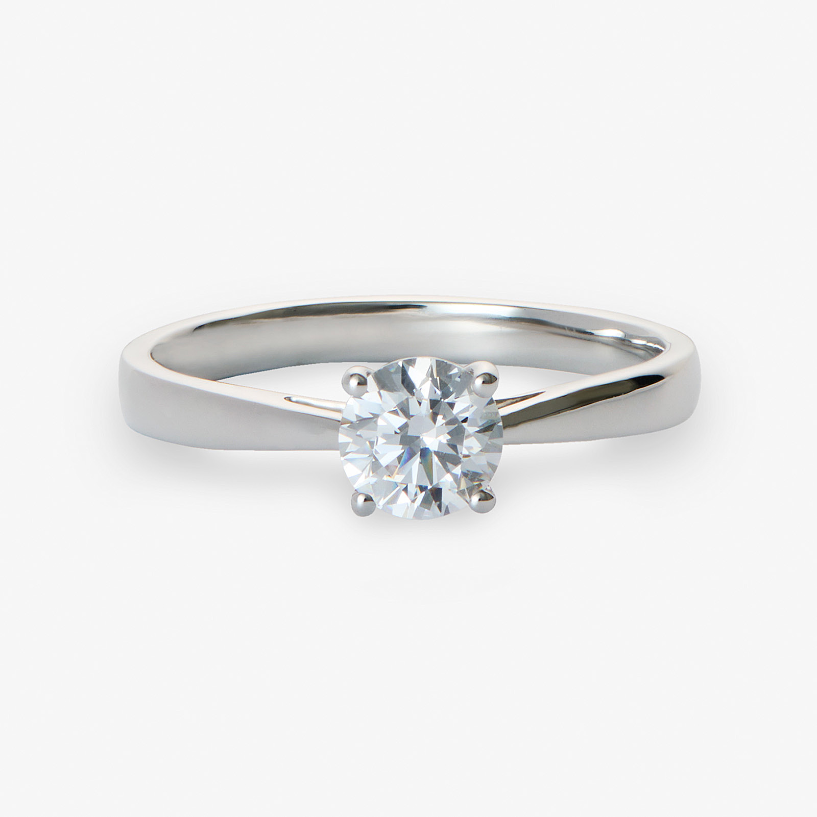 En elegant och tidlös solitärring med valfri diamant, infattad med fyra klor som ger diamanten ett fantastiskt ljusinsläpp. Den klassiska designen med diamanten i fokus skapar ett vackert kontrast mot det släta och stilrena bandet.
